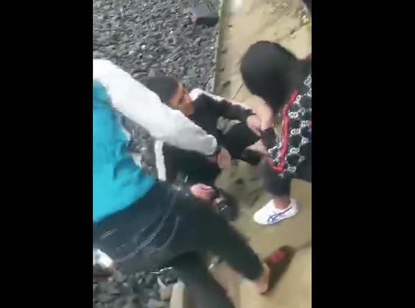 实拍女孩铁路旁遭多人殴打嘴角流血哀嚎求饶现场视频