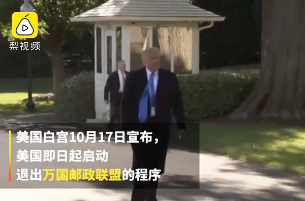 10月17日,美国白宫宣布,美国即日起将启动程序,退出万国邮政联盟。万国邮联是联合国为商定国际邮政事务而专门设立的政府间国际组织,成立于1874年。其宗旨是组织和改善国际邮政业务,促进国际合作的发展。