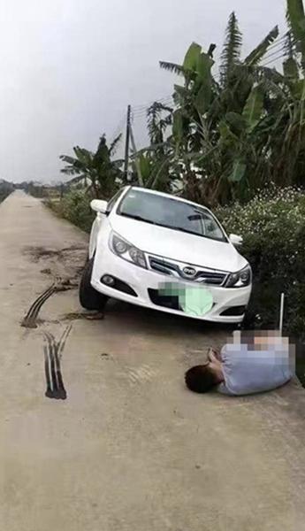 法制晚报·看法新闻记者注意到,这一消息来源于一个微信聊天群,有网友贴出了聊天截图,并配有照片,照片中一名男子躺在一辆白色轿车前,下身的裤子被脱至腿弯处。