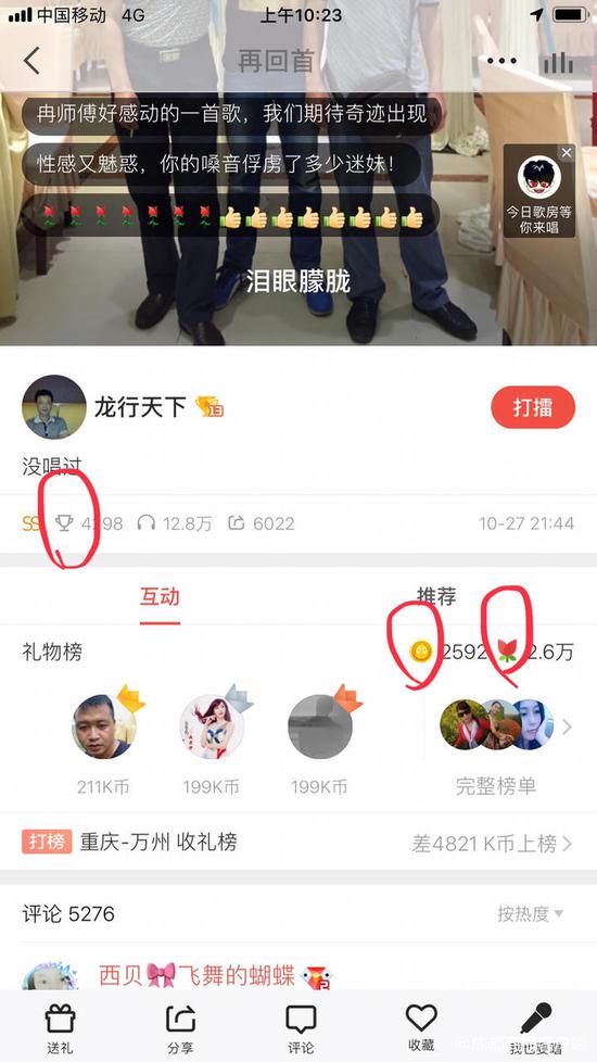 据了解,冉某今年42岁,在K歌APP的昵称为“龙行天下”。检索冉某的K歌APP注册信息显示,其于今年4月13日首次在平台K歌,第一次演唱的是《掌声响起来》。6个多月以来,冉某一共演唱了29支歌曲。冉某拥有9276个粉丝,且其粉丝仍在增长,而冉某只关注了96人。