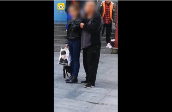 实拍兰州一男子闹市持刀劫持女子现场视频