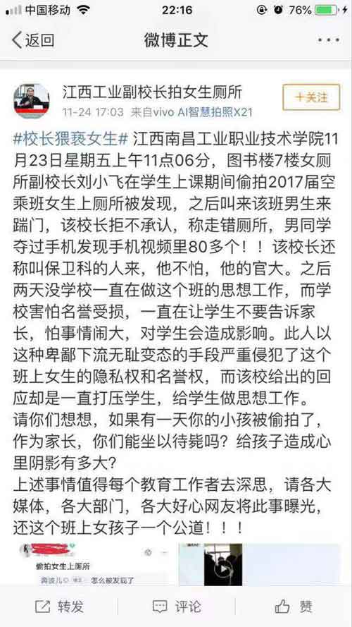 (原标题:江西一职校副校长被警方控制 疑因偷拍女厕)