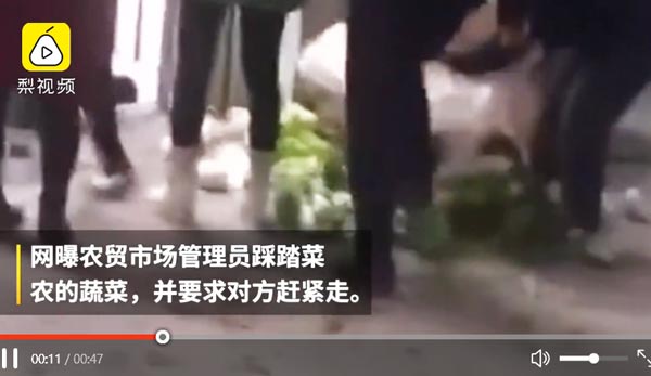 云南绥江农贸市场一管理员踩踏菜农蔬菜现场视频