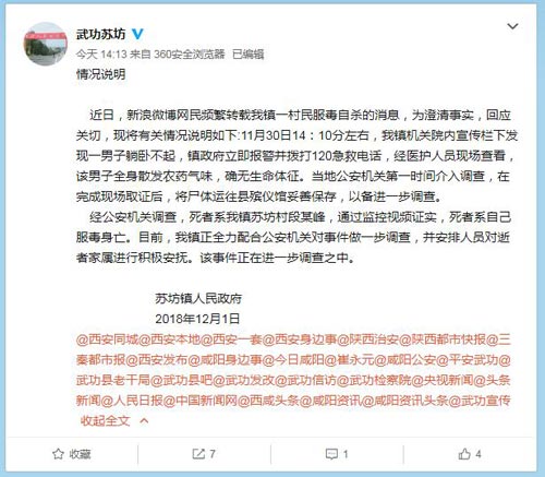 陕西武功县苏坊镇人民政府官方微博@武功苏坊12月4日14时13分消息: