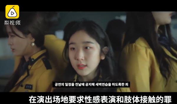 有“韩国明星摇篮”之称的首尔公演艺术高中学生,自发制作音乐剧MV《谁是罪人》,直指学校强制要求未成年学生参加酒席演出及部队慰问演出,并要求"性感表演"。目前该视频已获近百万点击,出镜学生均于上周毕业。