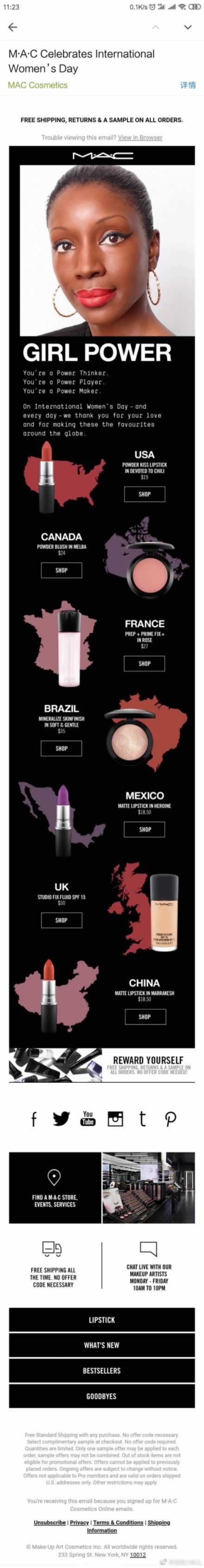 【环球网报道】3月8日是国际妇女节,美国化妆品牌MAC也在日前蹭了一把节日热度,向全美用户发送公司妇女节宣传活动邮件,然而邮件中出现的一张宣传图片,直接把自己推上了舆论的风口浪尖