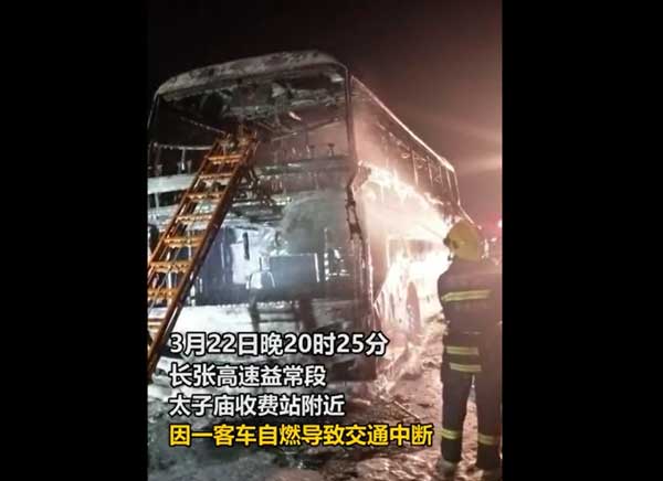 实拍湖南常长高速一旅游大巴突发起火致26死28伤 现场视频