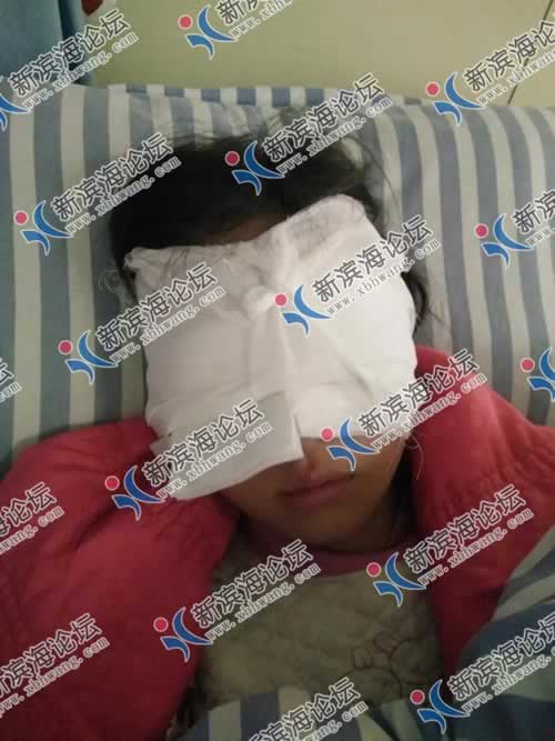 本月15号(星期一)下午,该女生被班主任拿棍子打脸,结果不慎打在左眼上,导致眼球出血。女孩家人在晚上来接她放学一直接不到,才知道孩子受伤住院。