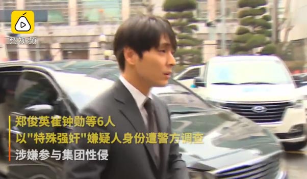 实拍郑俊英崔钟勋等6人以"特殊强奸"嫌疑人身份调查现场视频