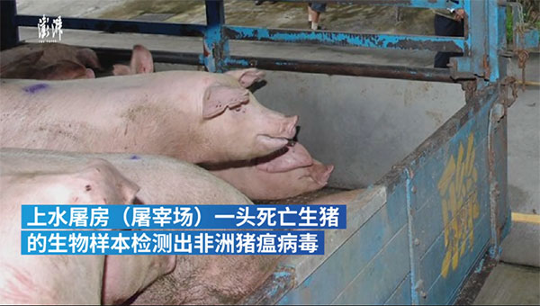 5月10日,香港上水屠房一头死亡生猪的生物样本检测出非洲猪瘟病毒。特区政府与业界达成共识,从13日起销毁屠房内6000只生猪。预计20日新鲜猪肉供应可得到恢复。