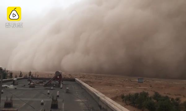实拍内蒙古沙尘暴吞没气象站白天瞬间变黑夜现场视频