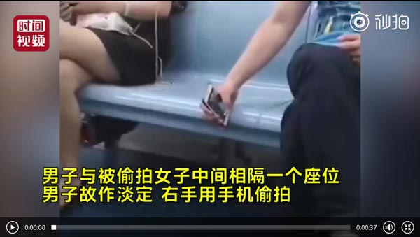 【看到请举报!西安地铁一男子偷拍女乘客裙底 警方正寻人】 6月13日,陕西西安,网曝地铁1号线一男子拿手机偷拍女乘客裙底。男子与被偷拍女子中间相隔一个座位,期间男子故作淡定,右手用手机偷拍。西安市地铁分局工作人员表示,已调取监控查明出站地址并成立专案组,正在确定该男子身份。
