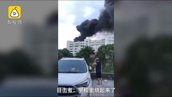 实拍温州籀园小学突发大火现场浓烟滚滚视频