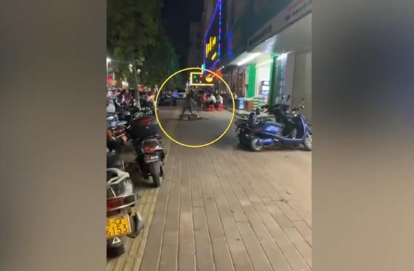 实拍徐闻一男子当街暴打妻子跳起猛踹头部现场视频