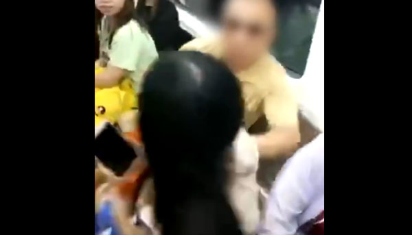 实拍长沙地铁老人强行挤走女孩抢座位我打死你视频