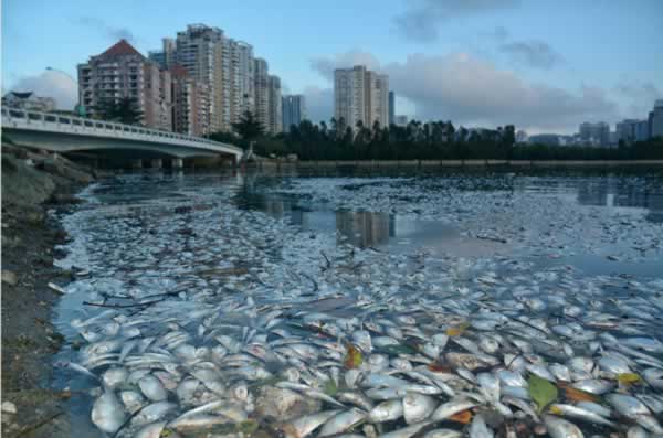 厦门筼筜湖现大量死鱼 气味腐臭难闻