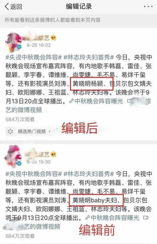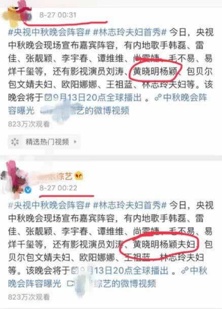 8月27日,这条通稿又出现了改动,在00:22分时改成了黄晓明杨颖夫妇,00:31分时又改成了黄晓明杨颖。这操作着实让人难以捉摸。
