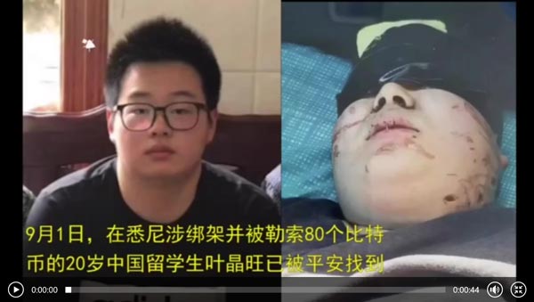 在悉尼疑遭绑架并被要求80个比特币为赎金的20岁中国留学生叶晶旺9月1日已确认平安。从8月24日发出被绑架的视频至今,叶晶旺经历了什么?