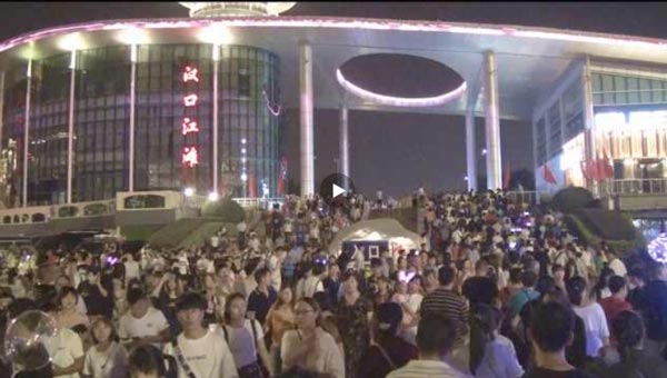 实拍武汉灯光秀游客爆满挤到没信号视频