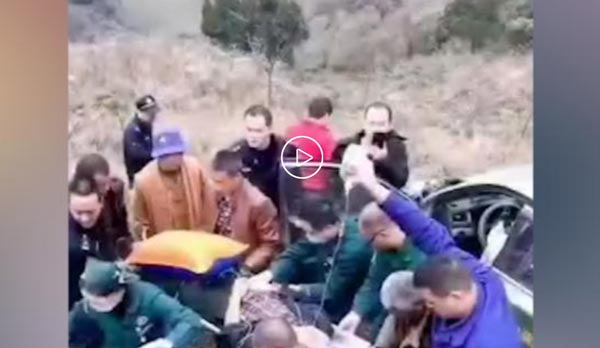 实拍四川一出租车冲下130米山崖司机奇迹生还视频