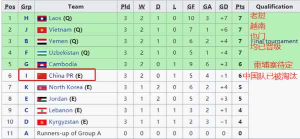 至于中国国青,100%确定出局。成耀东的国青队,6分1个净胜球,排名老挝、越南、也门、乌兹别克斯坦、柬埔寨之后,无缘“成绩最好的4个小组第2”。原本,中国国青还有极其微弱的希望:11月11日凌晨0点10分开打的卡塔尔国青VS也门国青,一旦卡塔尔以4-0或以上的比分击败也门,如此一来,也门6分0净胜球,排在中国国青之后,中国国青还能有理论上的晋级希望。