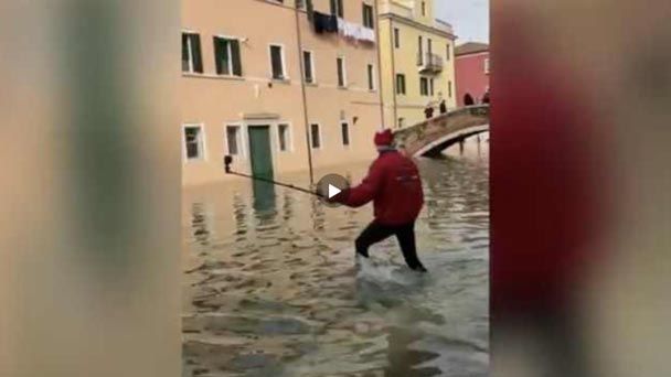 据每日邮报15日报道,一名自拍者在拍摄被淹的威尼斯时意外走红,他手持自拍杆边拍边自信向对街走去,不料摔进水渠。15日威尼斯再度遭遇大潮,水位高达1.5米。游客将这当成一种特别的体验,当地人却十分苦恼。
