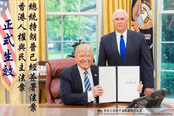 据联合早报:【白宫:特朗普已签署《香港人权与民主法案》】白宫发声明指,美国总统特朗普周三(27日)已签署《香港人权与民主法案》(Hong Kong Human Rights and Democracy Act)。
