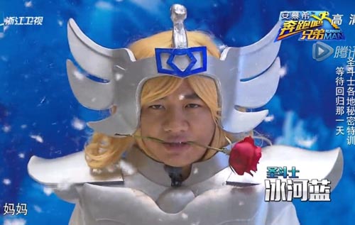 2015年奔跑吧兄弟第二季第一期节目将让明星们重回童年,Angelababy、邓超、李晨、陈赫、郑恺、王祖蓝及包贝尔将扮演成圣斗士降临成都,还有范冰冰及韩庚助阵,让第一期看点多多。女神范冰冰在节目中继续展现出霸气一面。 其中邓超变星矢,王祖蓝口叨玫瑰花叫妈妈搞笑出场让众人捧腹大笑!