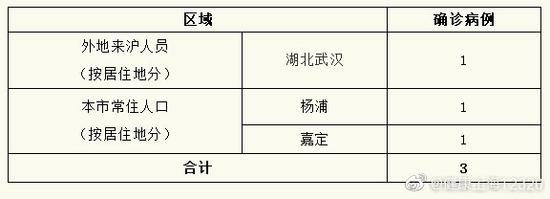 原标题:上海新增3例新型冠状病毒肺炎确诊病例