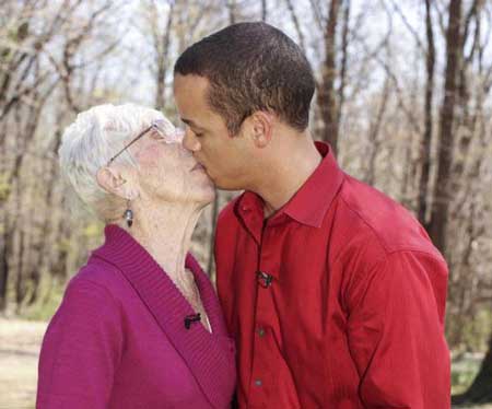 Kyle Jones与91岁女友Marjorie McCool拥吻