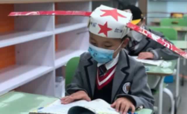 养正小学目前只有一年级,共四个班。开学回来,如何让小朋友养成良好的卫生习惯,学校也做了很多方案,“一米帽”就是其中一项内容。开学前,老师就让孩子们在家和父母一起动手做“一米帽”。帽子主要体现童趣创意,选用安全、卫生、环保的材料,结合孩子的想法,开学第一天戴着到学校,要求不能碰到他人,不能损坏帽子.