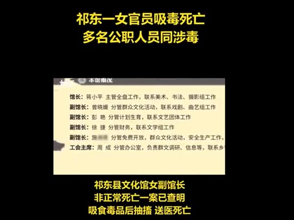 (原标题:祁东一女官员吸毒死亡,与她一同吸毒的还有多名公职人员)