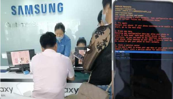 实拍三星多款手机黑屏用户维修千张照片丢失客服:闰4月计算出错视频