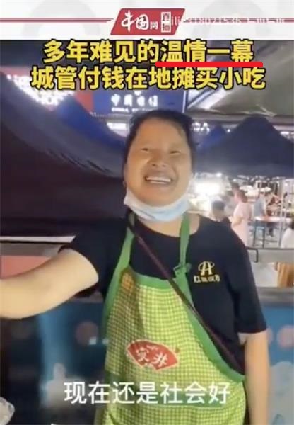 前几天看过一条视频:某地,两名城管在一个烧烤摊买东西,亲自付了钱。摊主阿姨开心地笑着说:“城管自己付钱,让他不付钱,他要付钱,现在还是社会好……”。