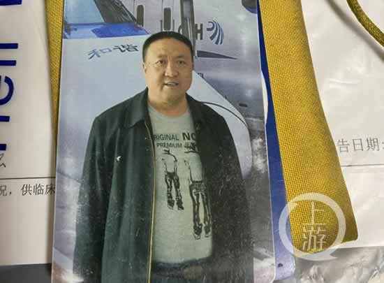 ▲康养中心售卖的护身符上印着刘尚林的照片。受访者供图