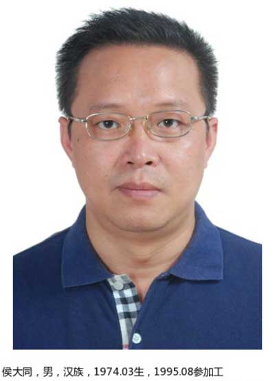 侯大同,男,汉族,1974.03生,1995.08参加工作,1995.06加入中国共产党,四川大学管理学院管理工程专业毕业,在职大学,西南财经大学会计学院会计学专业毕业,在职硕士。