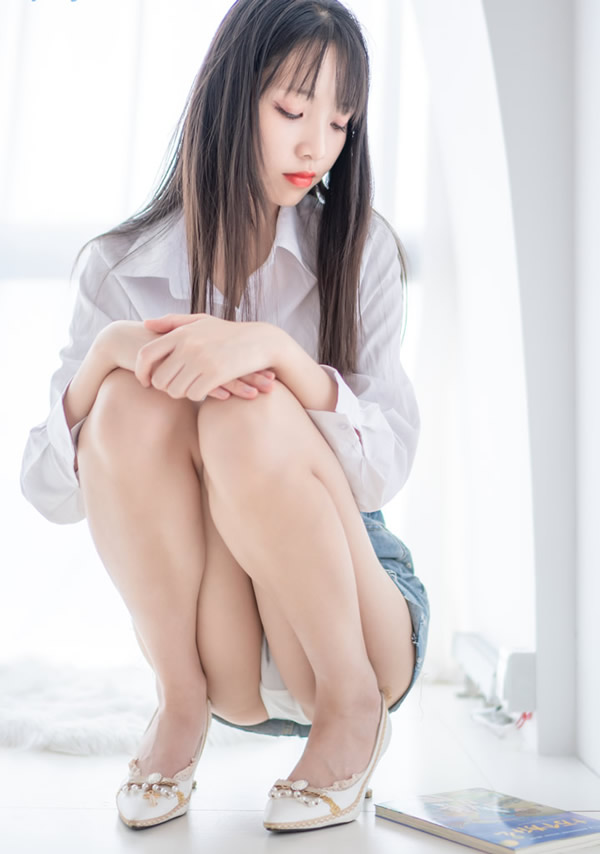 嫩模西瓜少女经典白衬衣牛仔短裙尺度图集