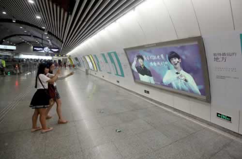 7月8日,重庆轨道交通1号线沙坪坝站站厅,被偶像组合TFBOYS给“承包”了。站厅内的广告灯箱换成了组合成员王源和王俊凯的照片,墙上也贴满了他们唱过的歌曲名。花钱“包”下这个站厅是四名女大学生,花费超10万元。这四个人都是TFBOYS的粉丝,她们希望通过这样的方式,让更多的人认识她们的偶像。重庆晨报 雷键/CFP