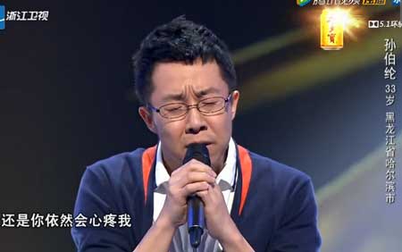 《中国好声音4》第二期正在进行时!其中来自黑龙江哈尔滨33岁的孙伯纶带来一首阿妹的《如果你也听说》唱出了自己多年隐藏在心里的心声。孙伯纶是一个有故事的人,当年他身无分文,妻子却不嫌弃他和他裸婚,奶爸孙伯纶今天用歌声感谢妻子的支持。