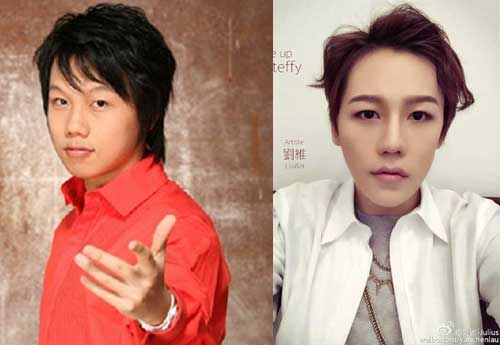 刘维整容前后对比照惊艳(左为刘维整容前,右为刘维整容后)