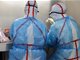 图为医务人员为出院患者进行消杀。中新社记者 张畅 摄