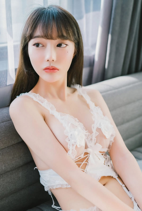 美女Jucy白色情趣内衣无圣光图集