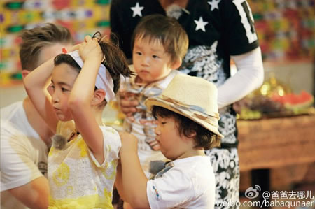 近日,夏克立晒出了一组轩轩为女儿夏天系项链的图片,照片中,夏天身着黄裙,文静乖巧,而轩轩则十分认真的帮助姐姐,网友称赞画面实在太美。