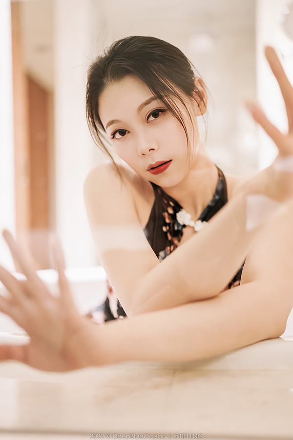 Coser长发美女黑胶衣比基尼身材修长美丽
