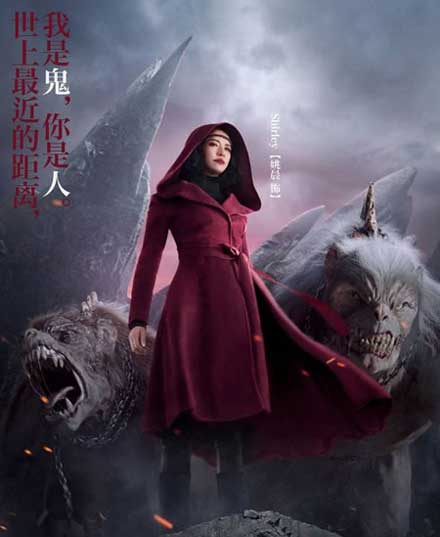 在最新曝光的这款海报中,Shirley杨(姚晨饰演)一袭鲜红的风衣霸气凛然,高站在石油礼堂的屋檐上鸟瞰群兽。殊不知,在她脚下的这座石油礼堂刚刚遭遇了一群怪兽近乎屠杀式的袭击,无一人生还。然而,她此时安然无恙的出现,不得不令人生疑。海报中那句“世界上最近的距离是,我是鬼,你是兽”,更令Shirley杨的人鬼身份笼罩上一层诡秘莫测的暧昧氛围。