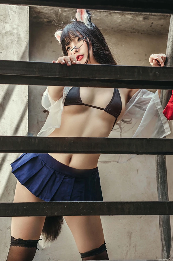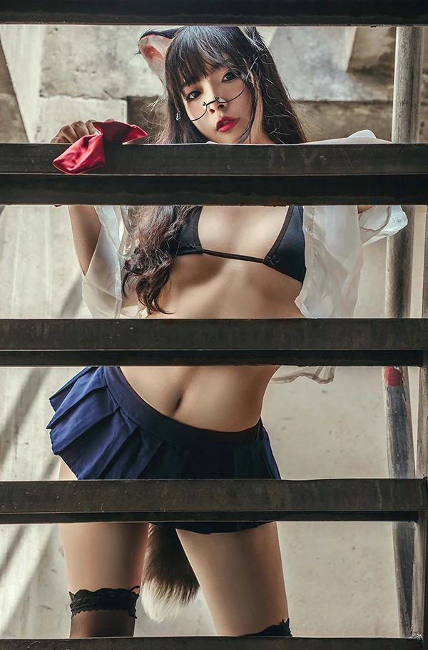 高颜值coser小姐姐@玉汇 豹纹牛仔+天台猫猫