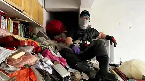 沉迷累积旧物的逝者,卢致宏在台湾“一年大概能见到一二十例”。他们多以捡垃圾为主,“什么篮球框、网球拍,在他们看来都是宝贝。”最让他触目惊心的一次,有位老人家里叠放了数百个没有清洗过的便当盒,爬满了蟑螂和蚂蚁。
