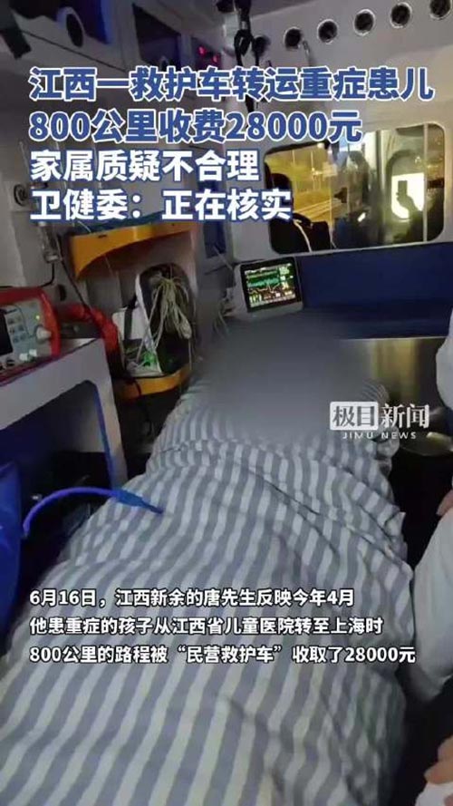 调查发现,救护车所有方南昌赣医医院存在收费不合理等问题。目前,卫生健康行政部门已责令其退回了不合理收费,并暂停医疗转运服务。下一步,我委将联合相关职能部门对事件进一步调查核查,如发现违规违法问题将严肃查处,同时对转运救护车规范使用加强监管,坚决维护患者权益。