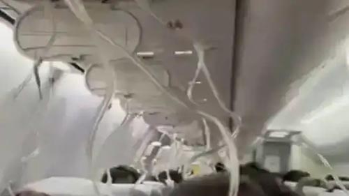 网友发布视频显示,座位上的氧气面罩都掉了下来。有乘客在评论区回复,称晚上8时多已迫降至大阪关西机场。
