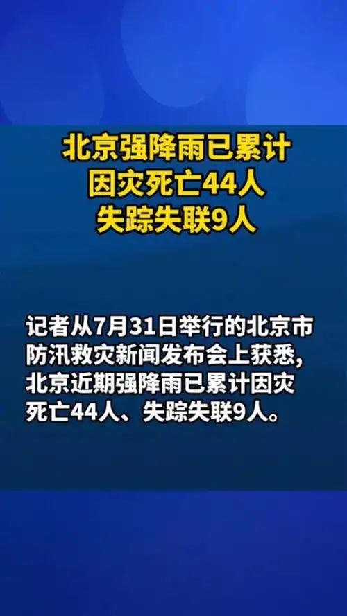 新华社北京7月31日电(记者赵旭、吴文诩)记者从7月31日举行的北京市防汛救灾新闻发布会上获悉,北京近期强降雨已累计因灾死亡44人、失踪失联9人。
